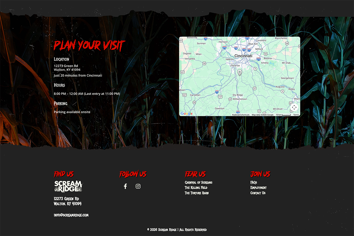 I designed and built the full WordPress site from scratch, covering multiple service verticals and audience types. The site architecture supports seasonal event promotion, private event bookings, venue information, farm experiences, and an active blog — all optimized for local search targeting Northern Kentucky and Greater Cincinnati.